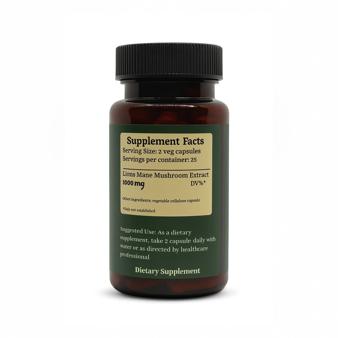 Lion’s Mane capsules support cognitive function, memory, and nerve health with naturally occurring β-glucans and neuroactive compounds for daily brain and wellness support.